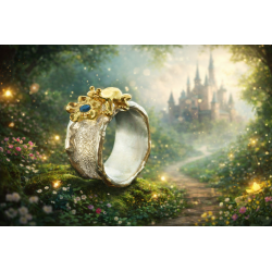 Liora lächelte und hob ihn vorsichtig auf ihre Hand. Sie brachte ihn in ihre Werkstatt und schmiedete aus reinem Silber einen Ring: fein, schlicht und doch lebendig. Auf der Oberseite ließ sie eine kleine Blume erblühen, und mitten darin setzte sie eine winzige Figur — einen Frosch, der so echt aussah, als würde er jeden Moment davonhüpfen.