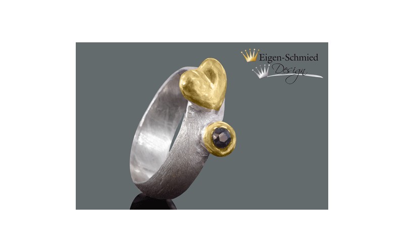 The ring is made of 925 Sterling Silver jewelled with 1 very nice sapphire and a heart. The heart and stoneholder are additionally gold plated.
