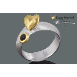 The ring is made of 925 Sterling Silver jewelled with 1 very sapphire and a heart. The heart and the stoneholder are additionally gold plated.