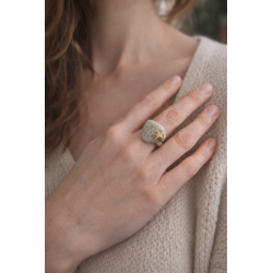 The ring is made of 925 Sterling silver jewelled with a stone and a shell
